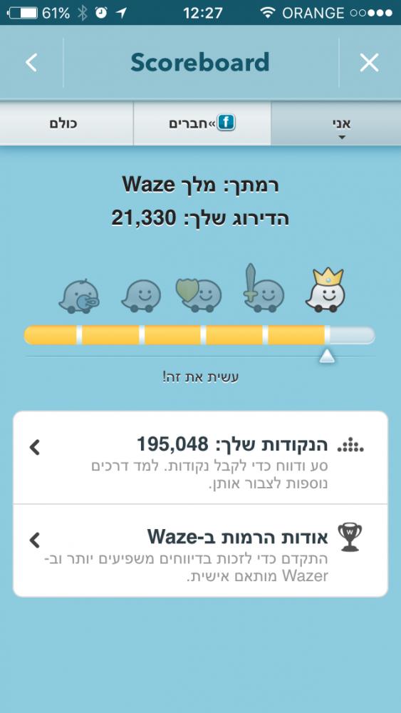 איזה מלך אני... ולא היה לי אפילו מושג. האמת שבזכות ההתרעות החברתיות שלה אני פותח וויז אפילו בדרך לשרותים ועושה מעל 50 אקמ בשנה.