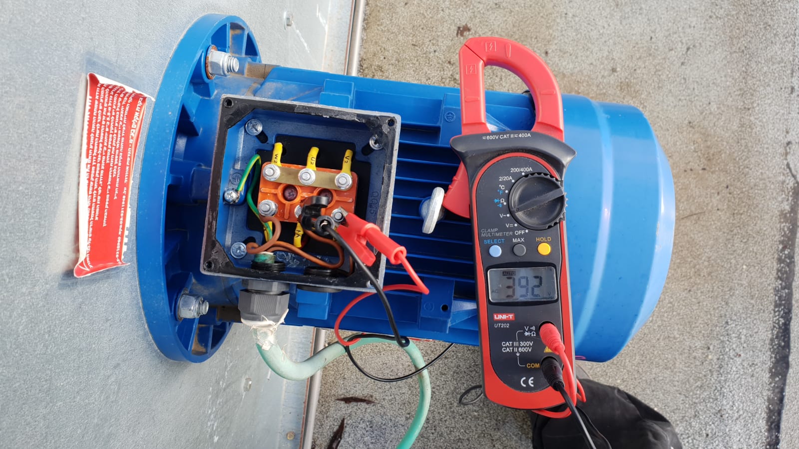 הזרם הנמדד בפועל נמוך משמעותית מהנקוב בתוית לצורת החיבור (המנוע מועמס, לא עומס מקס').