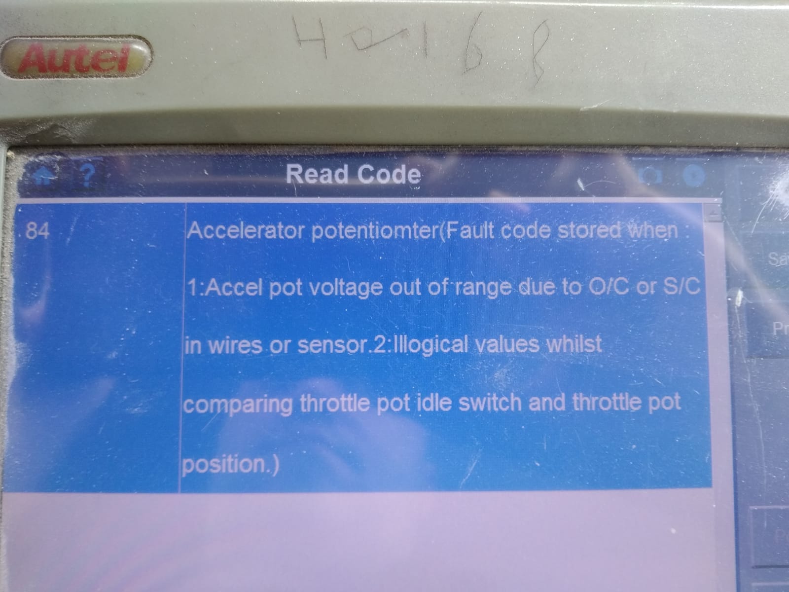 1:accel pot voltage out of range due to o/c os s/c in wires or sensor.