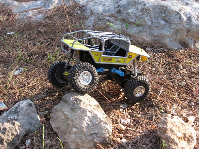 הילוך כח , 4X4, מהלכי מתלה נדיבים מאוד, נעילה קבועה אחורה וקדימה וצמיגים גדולים (אבל לא רחבים מספיק). מדובר ברכב שלט רחוק שנבנה במיוחד ל"זחילת סלעים" שהבאתי לילדים (ולי...) מארה"ב שבוע שעבר.