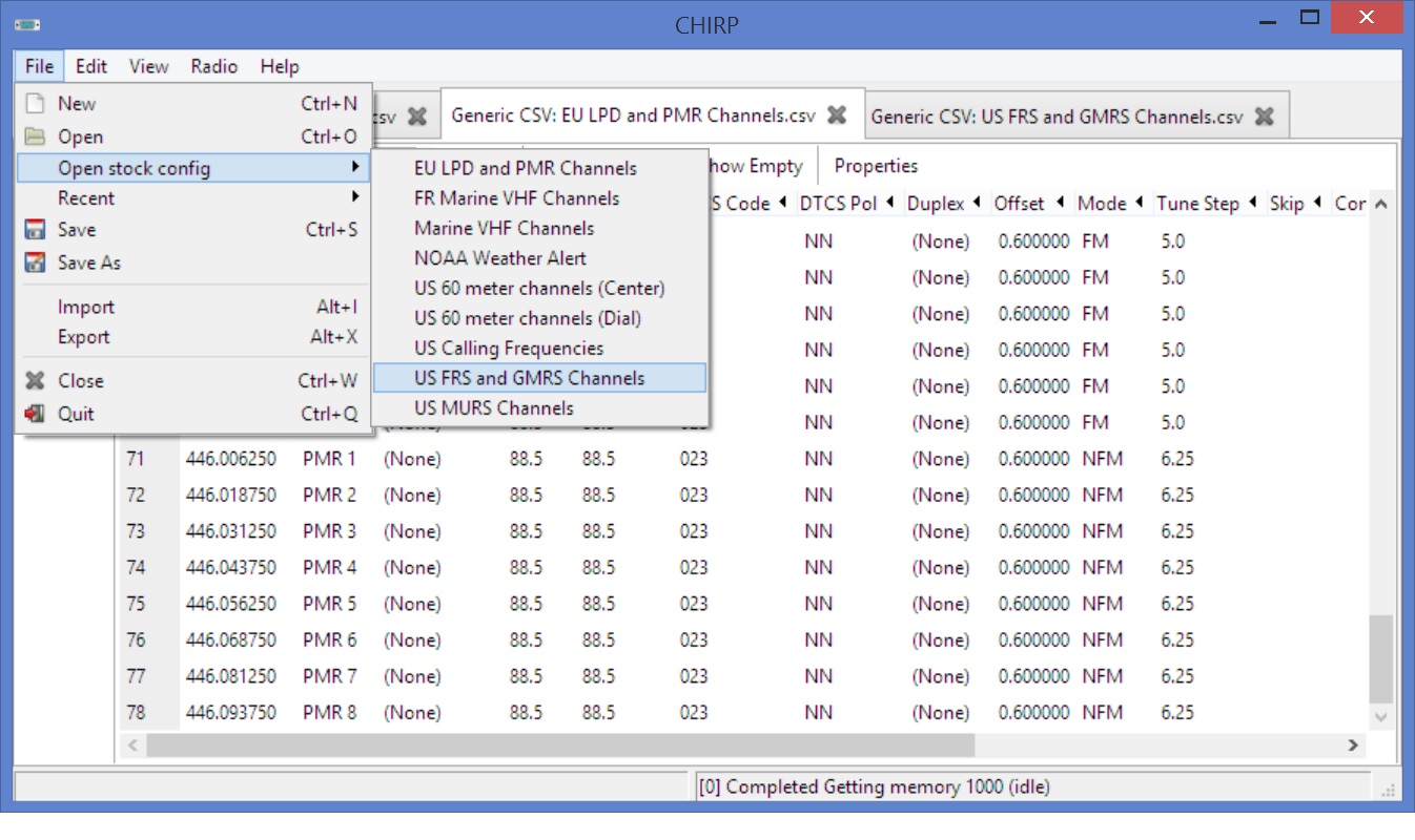 ан ъщъощ б Chirp, ъелм мдщъощ бдвгшеъ доелреъ щм EU PMR мъгшйн дайшефййн е US FRS мъгшйн даошйчайн: